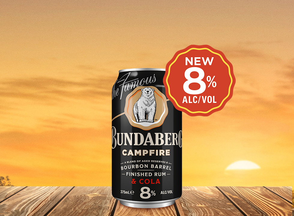 The mozzies are circling, the fire's crackling - but the sugar? Nowhere in sight. Bundy Campfire Rum & Cola Zero Sugar has landed, exclusivly at the Bundaberg Rum Distillery. Bourbon barrel-aged for smoothness, sugar-free for easy sipping. Swing by, stock up, spark up some proper campfire moments.